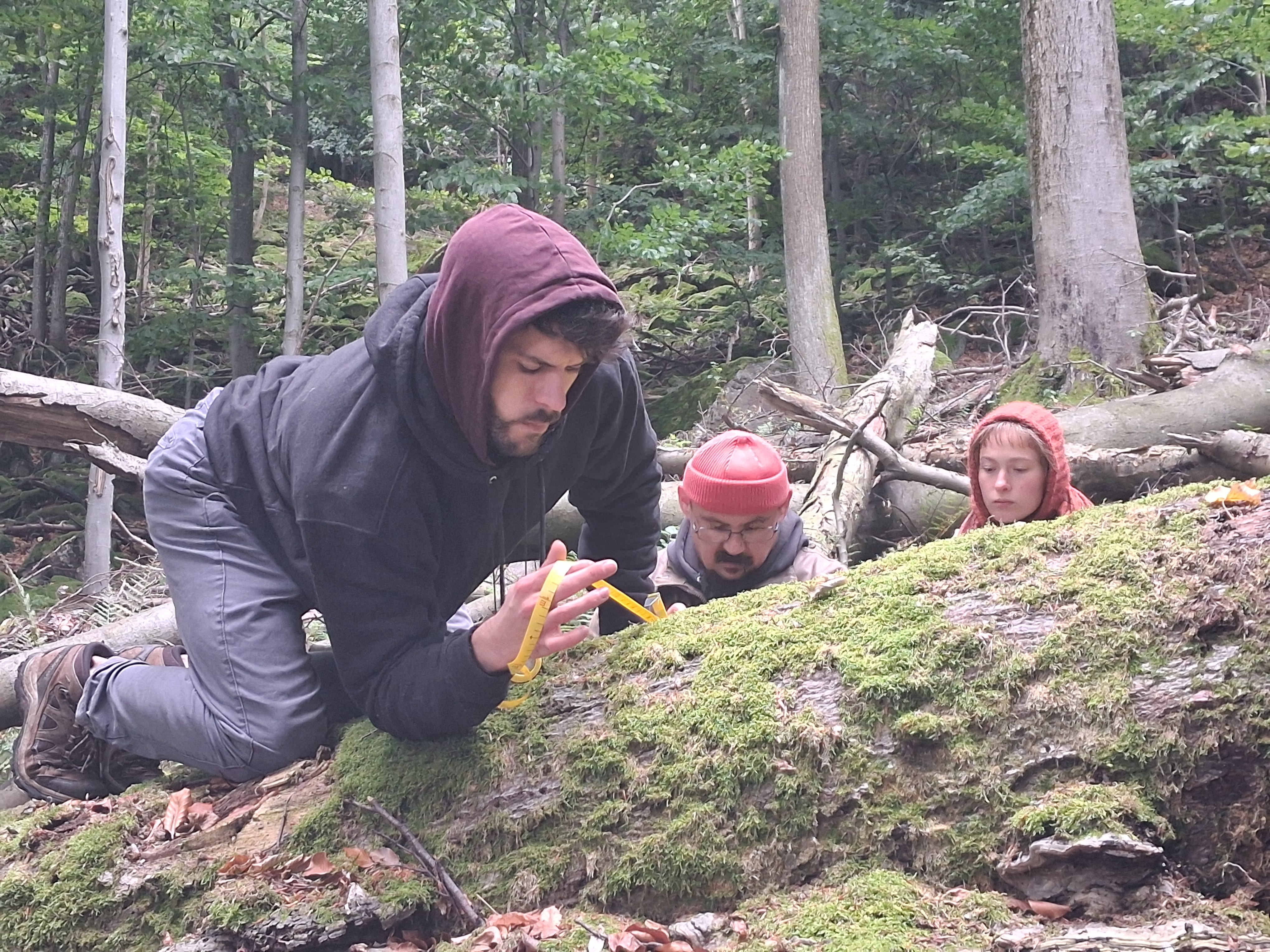Ezért - a HUN-REN ÖK ÖBI Erdőökológiai Kutatócsoport részéről Horváth Ferenc, és a MATE VTI, Természetvédelmi és Tájgazdálkodási Tanszék részéről Saláta Dénes egyetemi docens megterveztünk egy projektet a legnagyobb - feltehetően egyúttal legöregebb - bükkfák korának és évgyűrűnövekedési profiljának megismerésére! A reprezentatív mintavételt kizárólag holtfákra korlátoztuk, álló vagy fekvő holtfa törzsekre, hogy a fúrással még a látszatát is elkerüljük a "destruktív" beavatkozásnak a fokozottan védett területen.